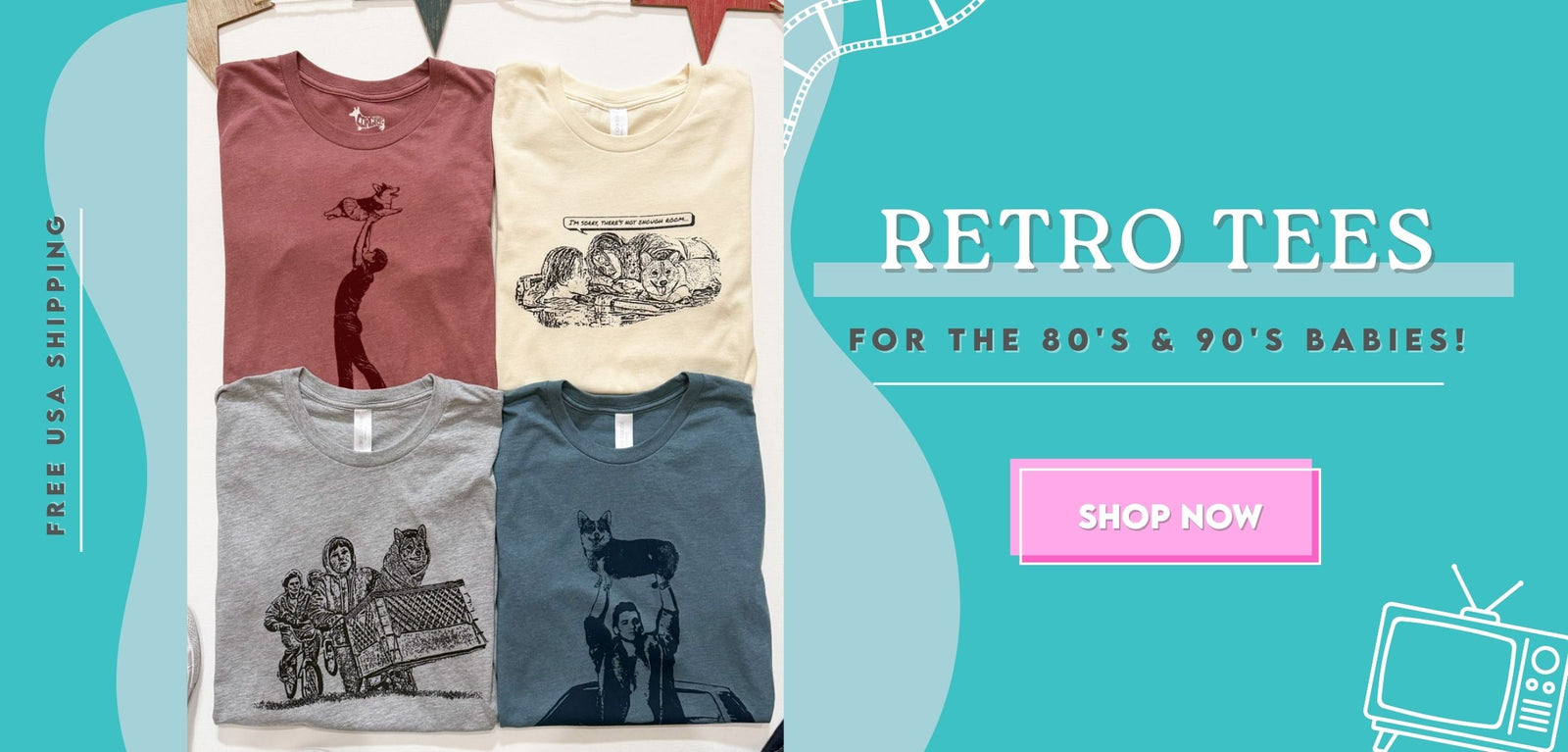 Nobody puts Corgi in a corner! Celebrate the 80's with our latest addition to the movie classics collection. The perfect tee for any 80's babies! Also available on a Long Sleeve version.